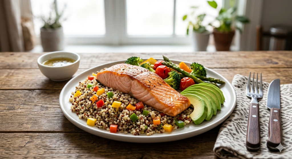 2. Salmon and Avocado Quinoa Plate